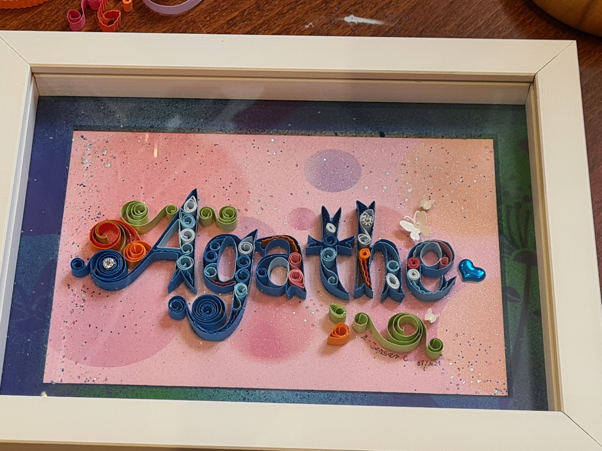 La pratique du quilling procure un effet enchanteur, façonner du papier et lui faire prendre toutes les formes possibles en y ajoutant plein de couleurs et de brillance, c’est tout juste magique. En proposant de thématisé et personnalisé un prénom, où commémorer un évènement, redonne une autre appréciation du cadeau.